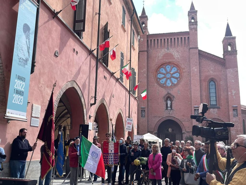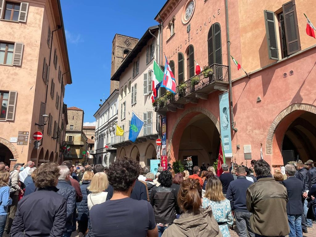 In una Alba gremita di turisti per la terza giornata di Vinum 2022, la Città medaglia d'oro al valor militare per il suo impegno nella lotta di Liberazione ha celebrato l'anniversario del 25 Aprile con una partecipata cerimonia tenuta di fronte al palazzo comunale di piazza Risorgimento.