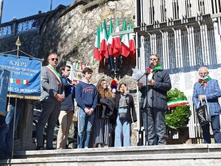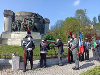 Il corteo si è poi diretto in piazza della Repubblica - attraverso corso Statuto e ponte Cavalieri d'Italia - per la deposizione della corona d'alloro al "Monumento ai Caduti", per poi raggiungere il monumento allo Scalone, per i "Morti per la Libertà.