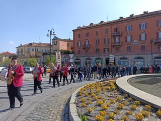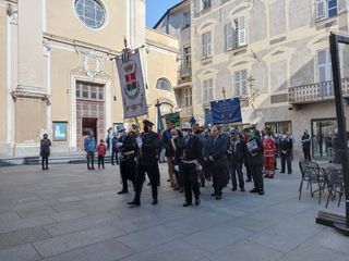 Questa mattina, dopo la S. Messa, celebrata nella chiesa di Sant'Agostino, in piazza Monsignor Moizo, è stato composto il corteo che ha percorso le vie cittadine: via Piandellavalle, piazza Santa Maria Maggiore, via Prato e corso Statuto, fino a raggiungere il Palazzo Municipale, dove è stata deposta la corona commemorativa presso le lapidi.