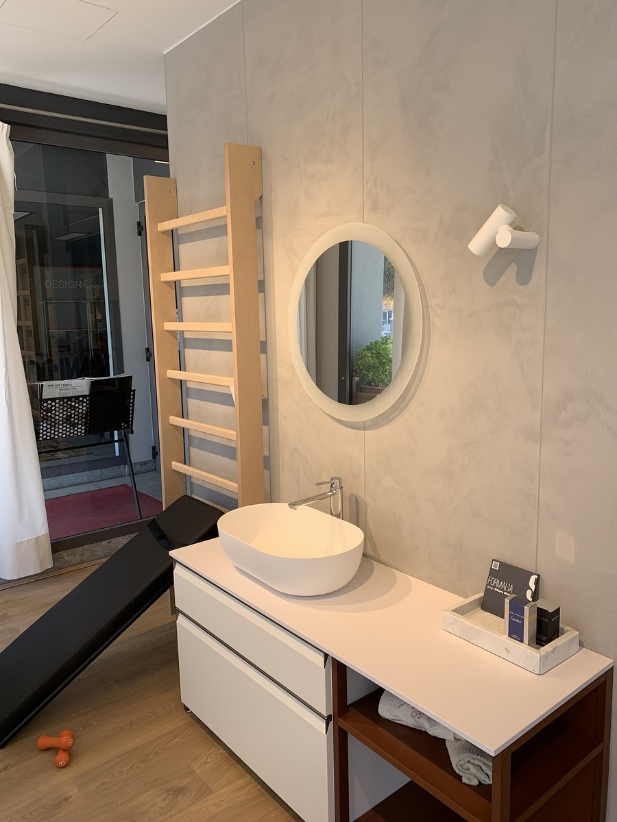 L’estetica delle ante di questo bagno determina lo stile di un ambiente. Bagno Formalia di Scavolini presenta l’anta sagomata e piedi a giorno. La cremagliera presenta un bagno nuovo per il mondo di oggi: con il sistema Gym Space.