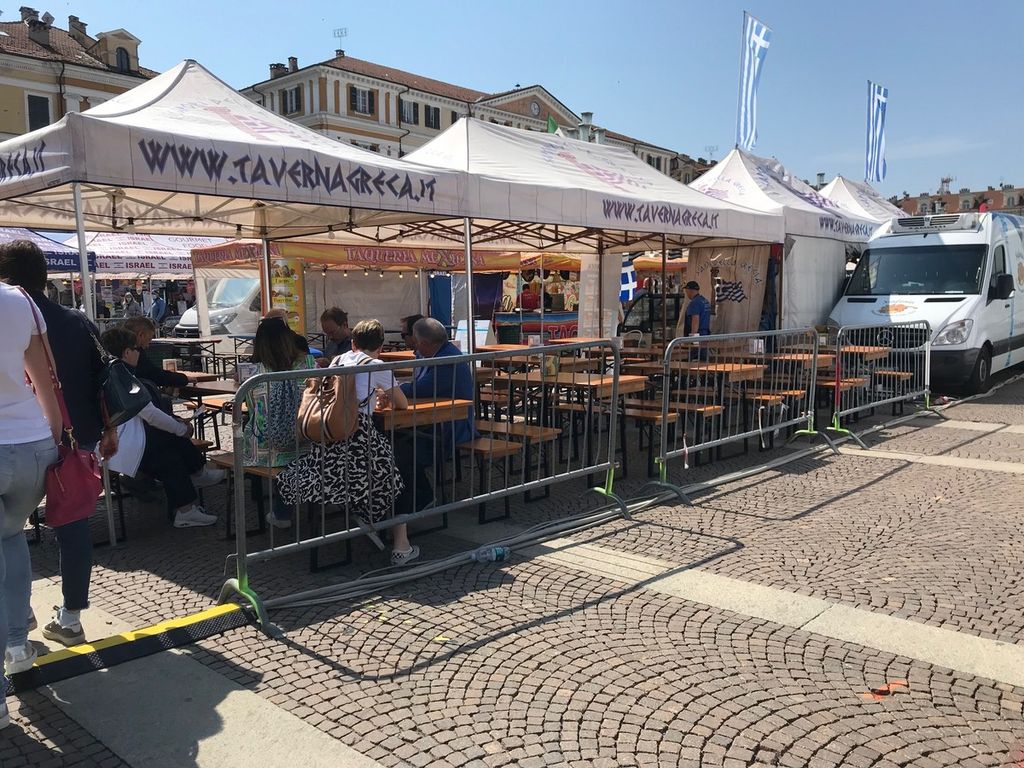 Nella piazza sono state allestite una quindicina di postazioni dove poter gustare comodamente le eccellenze enogastronomiche.
