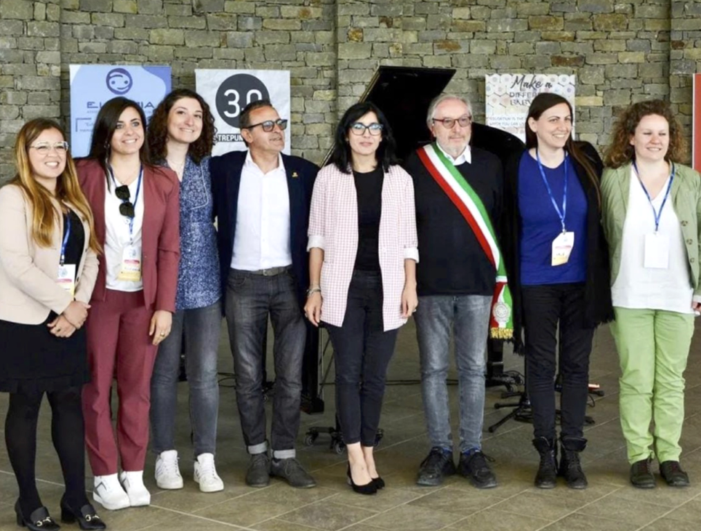 Al centro la ministra Fabiana Dadone, tra il consigliere regionale Ivano Martinetti e il sindaco Marone, con la fascia. Alla sua sinistra Ilaria Mardocco, organizzatrice dell’evento, insieme ad alcune collaboratrici del progetto