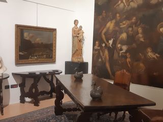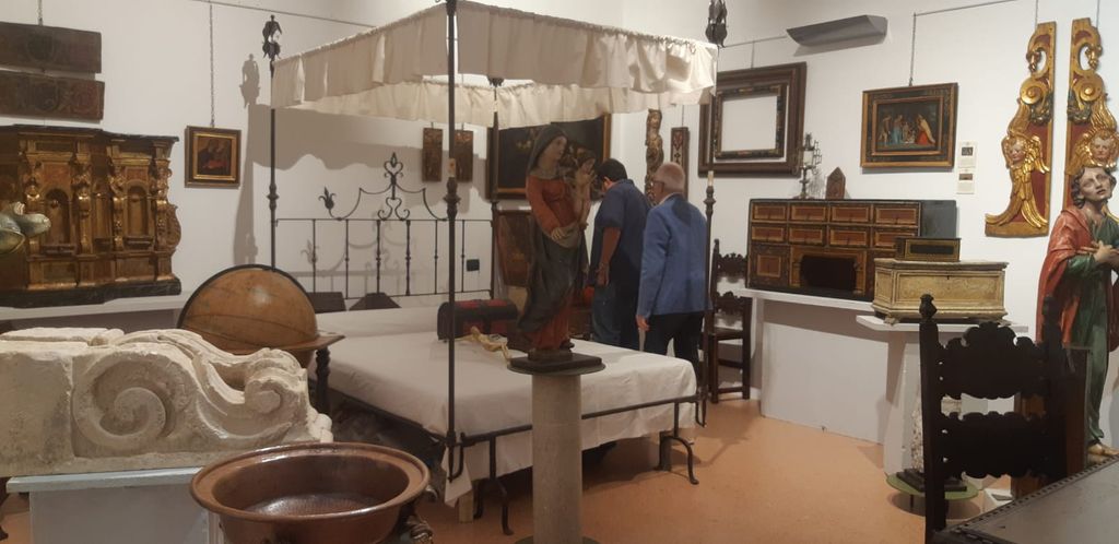 Tra le opere e i manufatti esposti che il pubblico potrà ammirare (sabato e domenica dalle 10 alle ore 20, gli altri giorni dalle 15 alle 20) una Madonna con Bambino opera del Maestro Francesco di Valdambrino Domenico (1363 - 1435 Siena), una coppia di angioletti barocchi di ambito berniniano, sorretti da basi a forma di nuvole, intagliati e dorati (XVI-XVII secolo, Roma), un comò piemontese a demilune Luigi XVI, una scenografica galleria di busti bianchi.