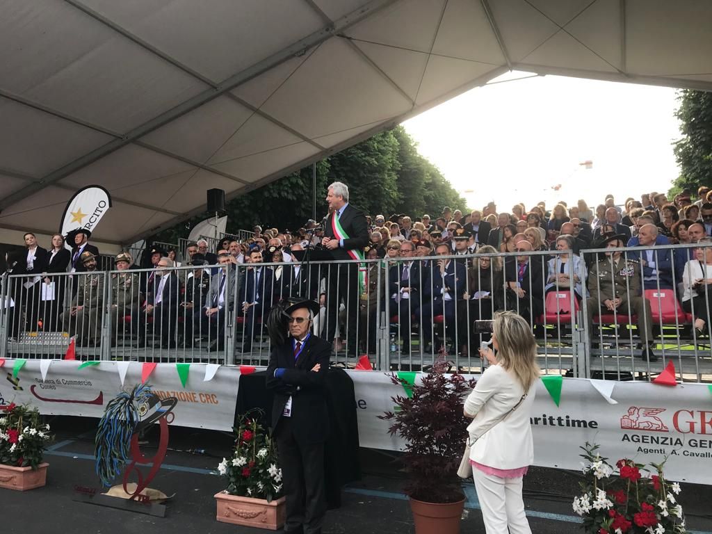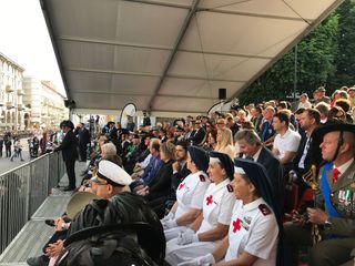 La sfilata è partita oltreun'ora più tardi, dopo gli interventi delle autorità tra cui il sindaco Federico Borgna (bersagliere onorario e sinceramente commosso nel proprio intervento), il presidente della Regione Alberto Cirio, la vicepresidente del Senato Anna Rossomando, il sottosegretario alla Difesa Giorgio Mulè, il segretario generale per la Difesa Luciano Portolano e Ottavio Renzi, presidente dell'Associazione nazionale bersaglieri.