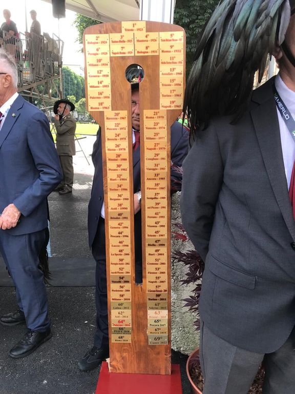 Verso le 13 il passaggio della "stecca", simbolo della manifestazione. E' stata consegnata all'assessore spezzino Filippo Ivani, in vista del raduno del 2023.