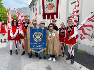 La città di Alba ha patrocinato l’evento ed ha fornito un fattivo sostegno, insieme al Comitato per i Gemellaggi. A nome della Città di Alba, il Consigliere comunale Lorenzo Barbero ha portato i saluti del Sindaco e ne ha efficacemente espresso la vicinanza ad una comunità che sta ancora vivendo un momento difficile. Presenti anche gli ambasciatori della “Confraternita della Nocciola” di Cortemilia, Paola Valzoano e Marcello Marascio.