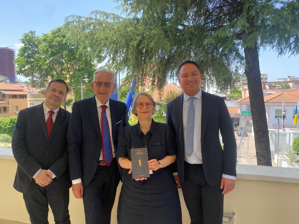 Il Banchiere internazionale e scrittore in visita ufficiale oltre Adriatico con l'imprenditore Luca Baravalle e l'addetto stampa Alessandro Zorgniotti, è stato ricevuto nel primo giorno di consultazioni dall'Arcivescovo Arjan Dodaj e da Elisabeth Barsacq Ambasciatrice di Francia. Ampio apprezzamento ed elogio nei confronti dell'Abbecedario.