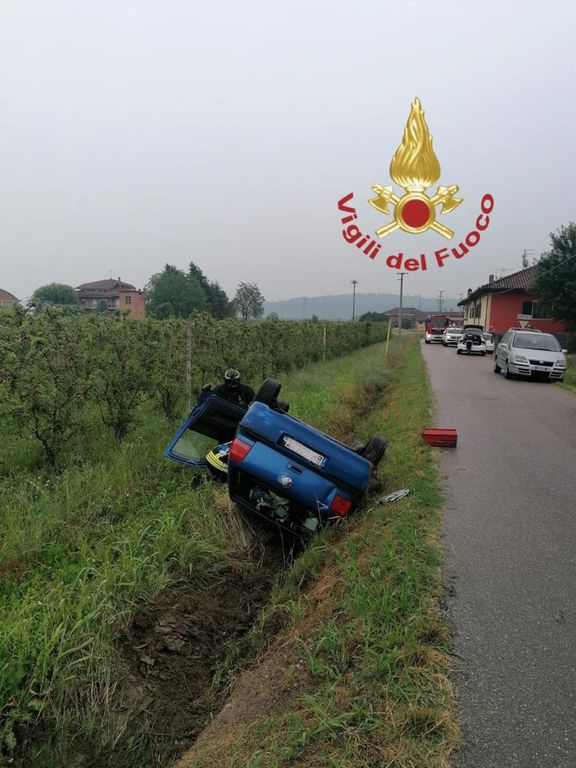Guarene, auto fuori strada dopo il frontale. Uno dei conducenti in ospedale