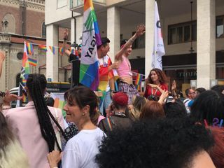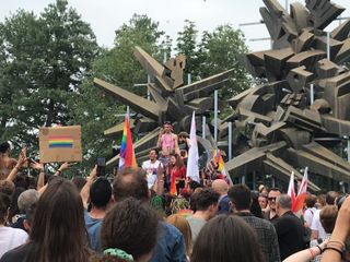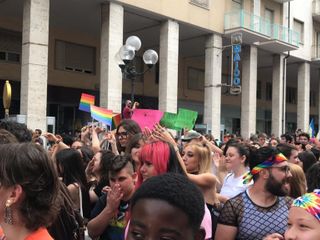 L'arrivo al parco della Resistenza è stato accompagnato da vari slogan tra cui "Amore libero", "Noi esistiamo" sulle note di "Nessuno mi può giudicare".