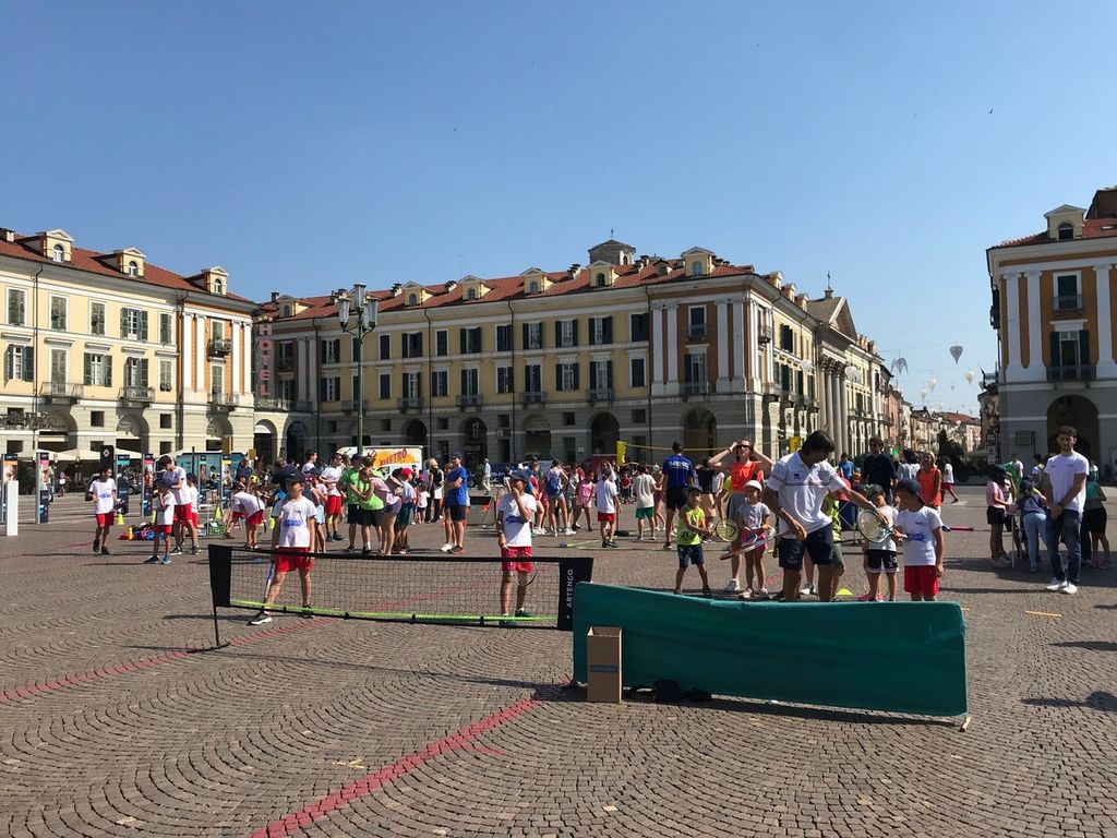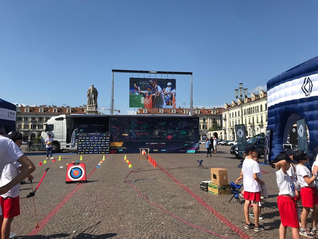 Ieri le splendide Ferrari; oggi la vitalità e lo sport con decine di bambini protagonisti in piazza Galimberti a Cuneo. Il cuore della città, come ha evidenziato la sindaca Patrizia Manassero nel dare il benvenuto alla seconda tappa del Road Show di Sport e Salute S.p.A., un evento itinerante di 40 tappe che porterà in altrettante città italiane il Villaggio dello Sport.