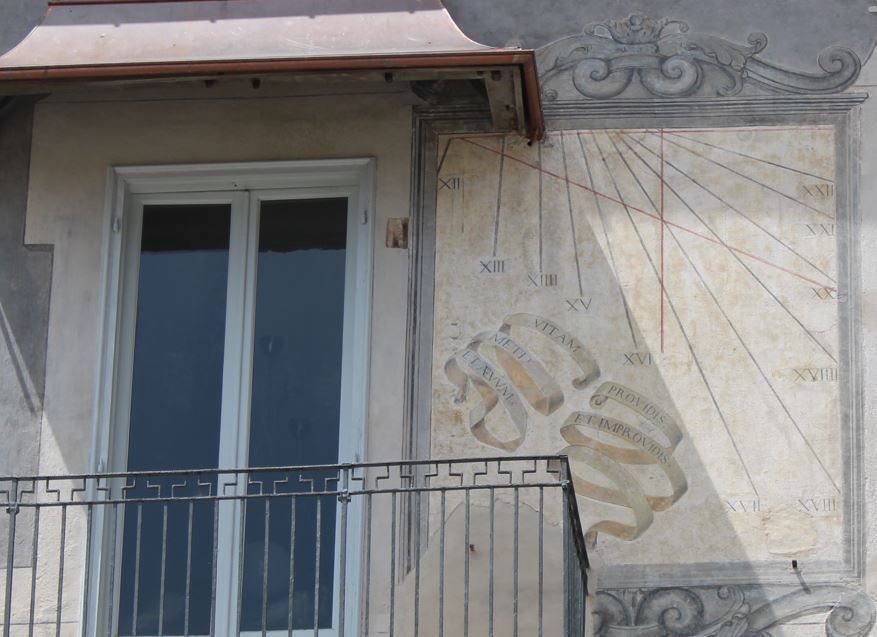 "Si tratta di palazzo Morozzo-Castrucci. La facciata è Seicentesca, così come il disegno della meridiana (che reca un cartiglio con la scritta: "Vitam et aevum metit(ur) providis et improvidis" - "Misura la vita e la durata ai previdenti e agli incauti"). Curioso è il fatto che nasca dall'unione di due case vicine: è nato dall’accorpamento di due edifici. Questo fatto è abbastanza comune, infatti, le "insule" medievali, con il passare del tempo sono state accorpate per rendere gli alloggi più vivibili, creando anche cortili interni.