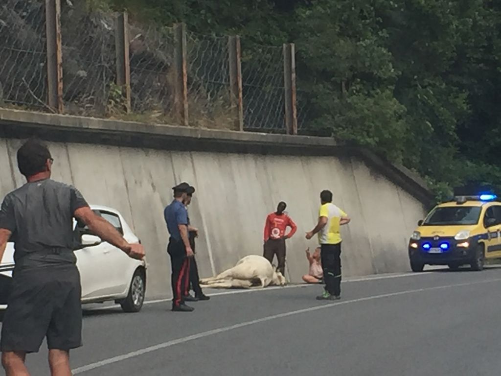 Il curioso fatto è successo nel pomeriggio di ieri (18 luglio). L'animale stava pascolando in un prato sopra la strada. Dopo diversi minuti si è fortunatamente ripreso tra lo stupore dei presenti