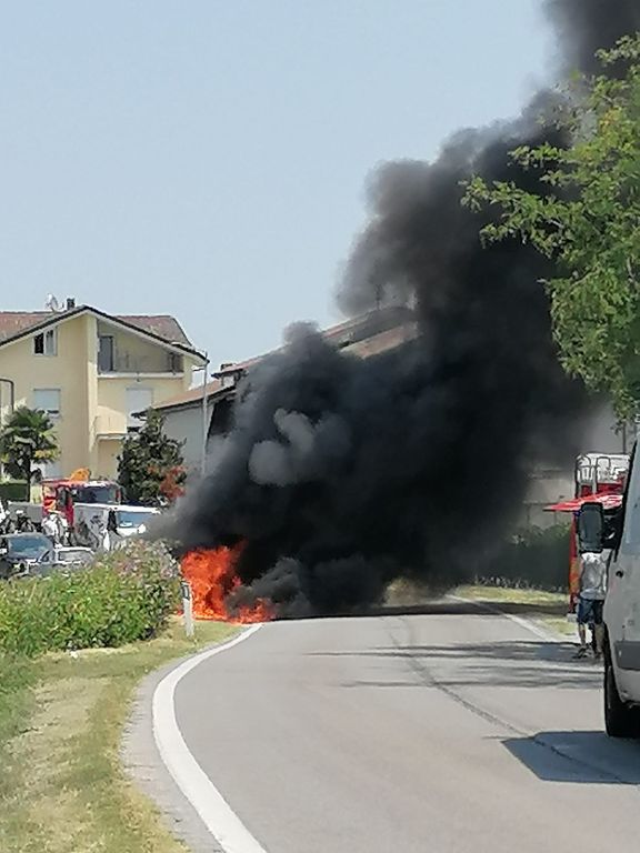 Veicolo in fiamme a Castiglion Falletto, disagi per la circolazione