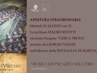 La platea, oltre al mio racconto, ha potuto visitare Palazzo Vecchio in un contesto inedito, nel chiaroscuro della notte, ed è stata affascinata, come il sottoscritto, da questo splendido contesto. La storia della scritta menzionata nella bandiera, da me romanzata, prende ispirazioni da un frammento di storia, che racconta come il pittore Giorgio Vasari, abbia voluto narrare la vicenda di un gruppo di fiorentini, stufi dei soprusi della famiglia dei Medici, che offrirono il loro appoggio ai Senesi. L’esito della battaglia, nota alla storia, condannò questi sventurati a terribili torture, facendone dimenticare al popolo i loro visi ed i loro nomi, a monito di chi avesse solo pensato di ribellarsi al potere.