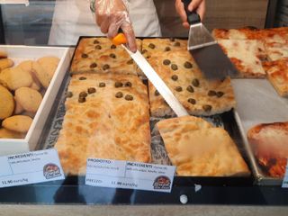 Sul bancone si può trovare la versiona classica con i fiocchi di sale, oppure con i semi di girasole, di sesamo, di papavero e addirittura con la nutella. Ci sono anche i brezel ad anello e, con la stessa pasta, preparano anche un “salatone” ai wurstel. Non mancano poi il pane, la focaccia, la pizza e i dolci: “Oggi abbiamo i biscotti al cioccolato, ma prepariamo anche ottimi strudel di mele. Dipende dagli ingredienti del giorno”.