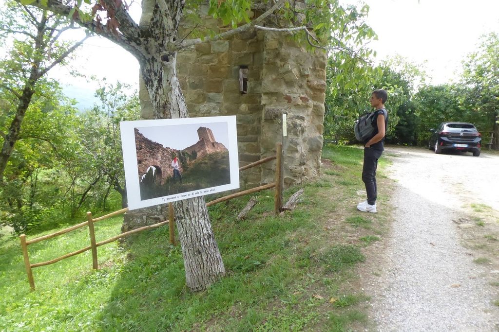 Il giorno seguente la tappa è stata in Casentino, vicino Poppi, a vedere, nel borgo di Porciano, intorno a uno dei castelli dei conti Guidi, l’esposizione (allestita sin al 17) di quattordici grandi fotografie di Sandra Ceccarelli (plastificate, da esterno), dal tema «Con Dante in Casentino» (il poeta interpretato da giovane in blue jeans, ad evocare versi del poeta, e della sua «Divina Commedia», sullo sfondo dei bellissimi paesaggi della zona). Nella vicina Pratovecchio (bar e sede del Parco) son montate altre due esposizioni dei due, Ceccarelli e Piazzini. La terra toscana è fertile, come nessun altra, forse, a iniziative artistiche e culturali. Il contemporaneo patrocinio a queste iniziative delle due più grandi Associazioni italiane di fotoamatori, la «FIAF» e la «UIF», ne documenta il livello.