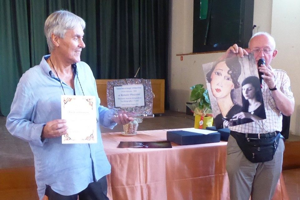 Poi ci si è spostati a Campi Bisenzio, alle porte di Firenze, dove il fotografo fiorentino Renato Piazzini, insieme a Gianna Randelli, nella limonaia della Villa Moncalvo (edificio di origine medievale, con rifacimenti barocchi, circondato da grande parco), inaugurava l’esposizione «Armonie» (nudi femminile ed elaborazioni, analogiche, colorate, di radiografie di conchiglie (aperta sino a fine mese). In quella circostanza, davanti a buon pubblico è stato premiato sia Piazzini (vincitore della sezione «La fotografie e l’arte», con «Lei e Modì», ritratto femminile del pittore Amedeo Modigliani e sfocata donna in primo piano) che Sandra Ceccarelli (altra fiorentina, vincitrice della sezione «Quel color amaranto», con bel ritratto preso dalla sua recente versione «al femminile» della «Ultima cena» di Leonardo da Vinci, stupendo ritratto, giudicato anche miglior scatto dell’edizione ). Come da scelta dei vincitori, son state consegnate targhette, originali...