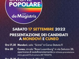 Alle 17,30 presentazione dei candidati Aniello Fierro, Lorenza Ameglio, Fabio Panero e Michele Baracco a Mondovì nella sala “Scimè” in corso statuto 11.