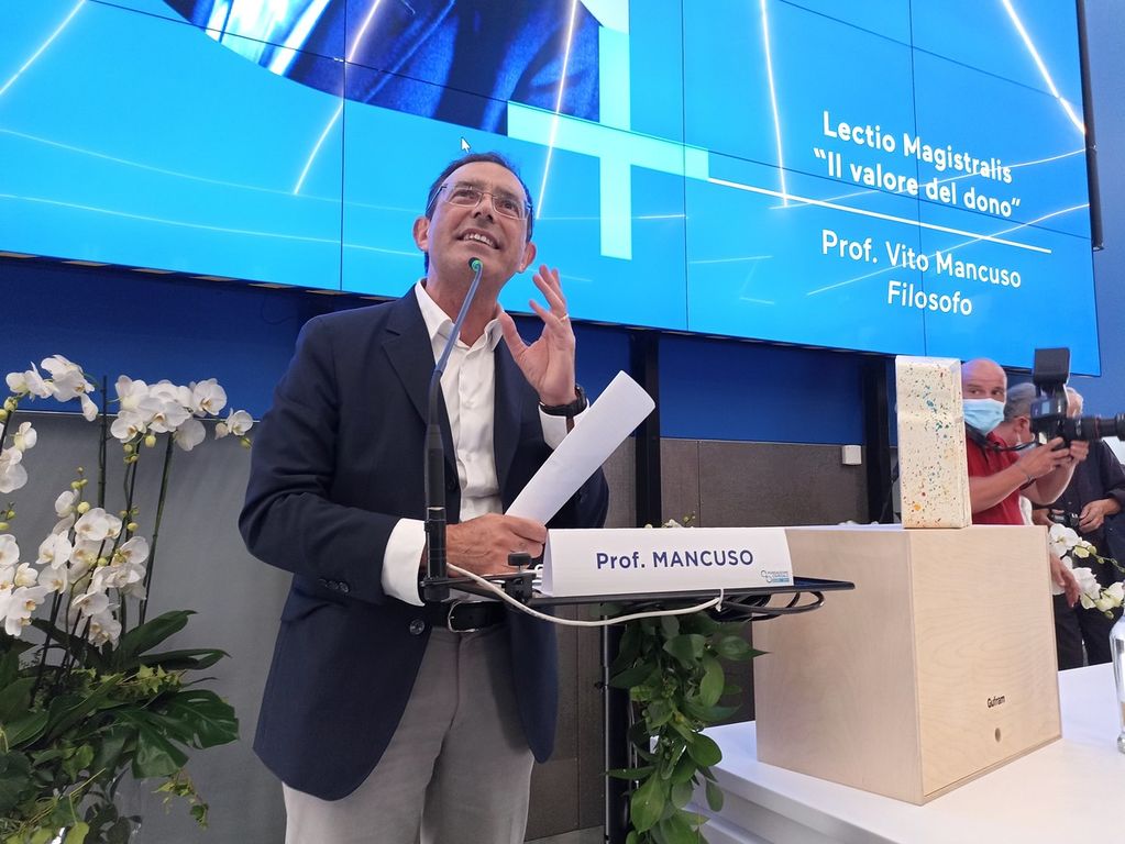 Da sempre caposaldo della visione imprenditoriale di casa Ferrero e ieri al centro della lectio magistralis tenuta dal filosofo Vito Mancuso, il tema del dono è ricorso negli interventi che si sono susseguiti dal palco di un’auditorium gremito di autorità civili e religiose, ma soprattutto da amministratori del territorio ed esponenti del mondo economico e della società civile di Langhe e Roero.