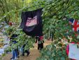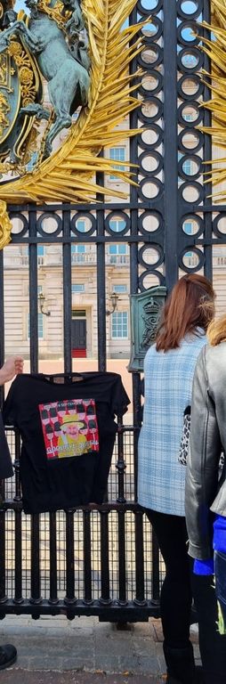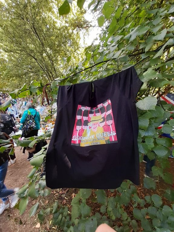 Silvio e la compagna Maria Lucia per l'occasione hanno portato anche quattro magliette con la scritta "Goodbye Queen", deposte a Buckingham Palace e a Green Park.