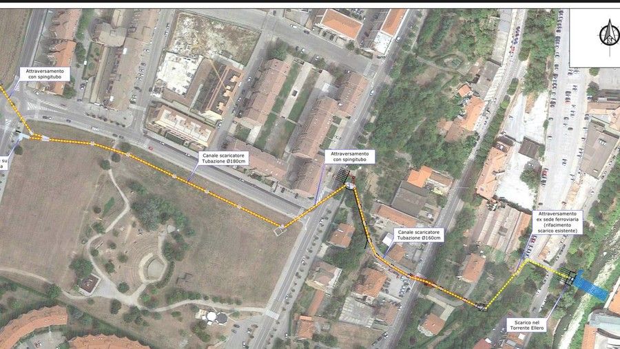 Il “tubo” partirà alle spalle di via Ortigara (rotonda di via Alpi) passerà attraverso parco Europa parallelamente a via Manzoni, via dell’Arciprete, via Vittorio Veneto e giungerà al piazzale della dismessa stazione ferroviaria, passerà poi per via Durando per andare, infine, a “gettarsi” in Ellero.