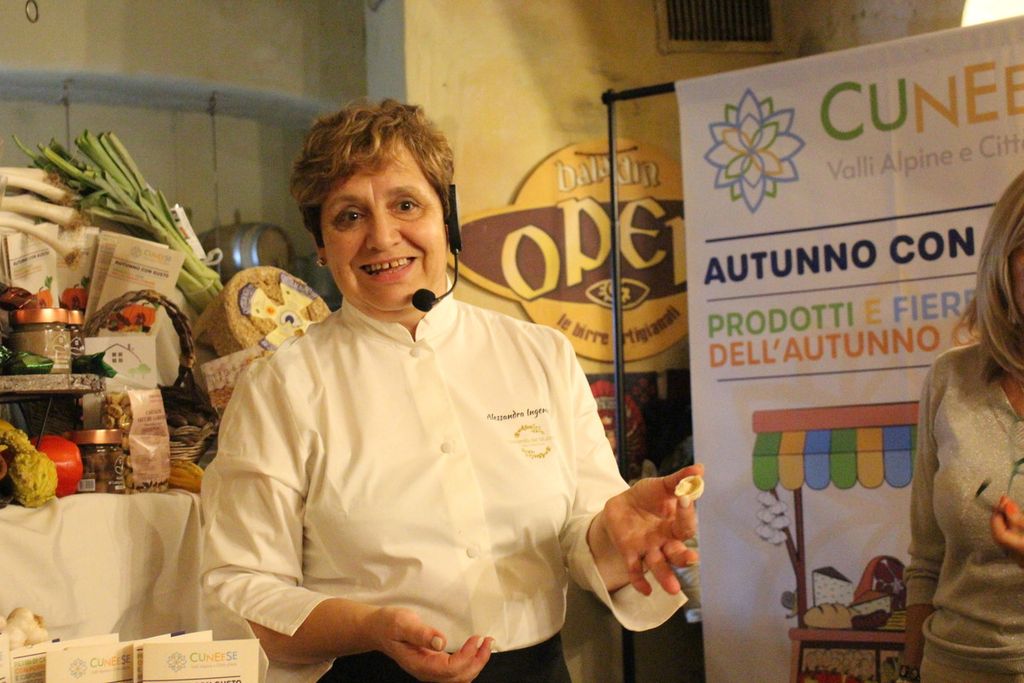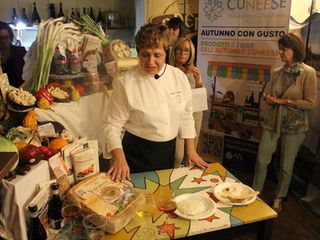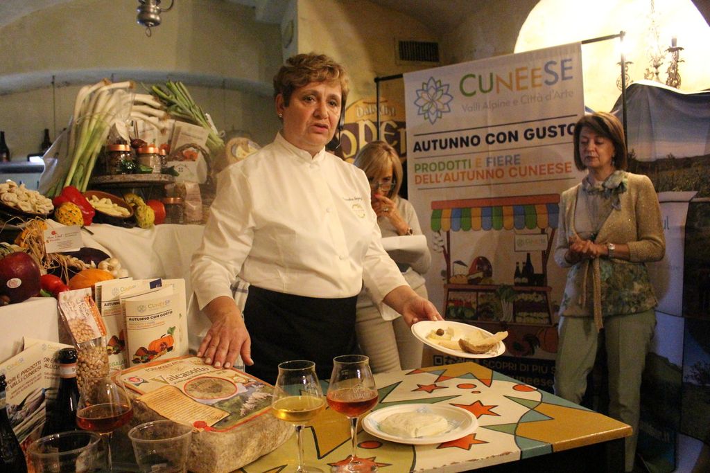 Grandi protagoniste le materie prime come la castagna, reduce dalla vetrina della Fiera del marrone, o il bue grasso di Carrù e il cappone di Morozzo, per non parlare della frutta e della verdura: il porro di Cervere, il peperone e la mela di Cuneo, i ceci di Nucetto. E poi ancora il prosciutto crudo di Cuneo, il Castelmagno e gli altri formaggi d'alpeggio, la torta al marrone di Cuneo, i cuneesi al rum.