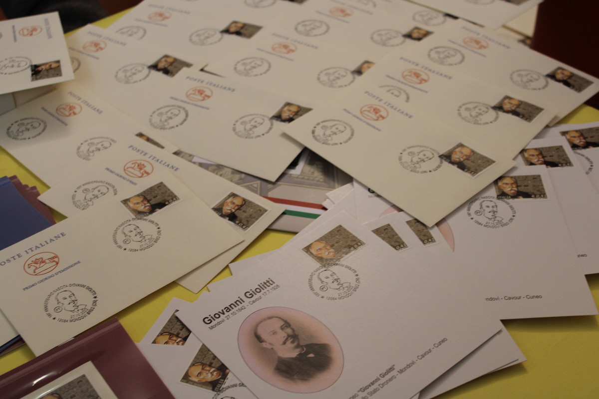 L’annullo, nel formato tondo, riproduce l’immagine di Giolitti giovane con la scritta “180° anniversario dalla nascita Giovanni Giolitti”.