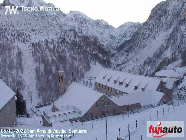 L'immagine arriva dalla webcam che ha immortalato il santuario più alto d'Europa, meta di tanti pellegrinaggi a piedi e in bici, questa mattina, sabato 5 novembre.