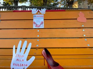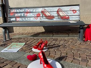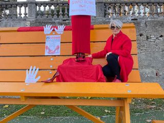 Nei giorni scorsi sulla big bench dell'Albarosa era stata creata un'installazione molto evocativa, un manichino vestito di rosso con in mano un cartello: "Siamo donne non manichini".