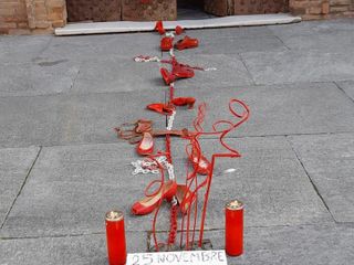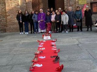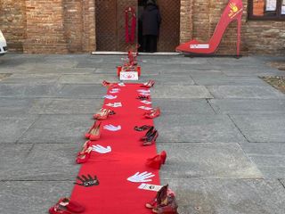 Poi ieri, domenica 27 novembre, grazie alla collaborazione di don Armando Ferreri, sul sagrato della chiesa è stato allestito un "tappeto" di scarpette rosse con la piastrella di ceramica creata lo scorso anno dalla catechista Marina Denegri.