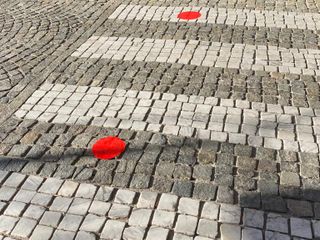 Una serie di pallini rossi indicava poi il percorso dalla parrocchia alla piazza dove si trova la panchina rossa contro la violenza di genere, accanto alle altre che insieme compongono l'angolo del rispetto.