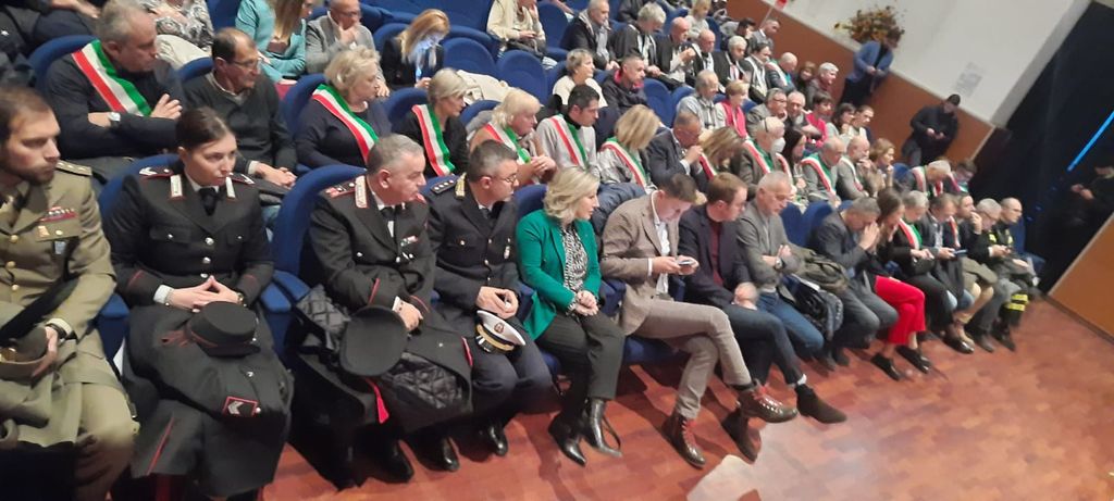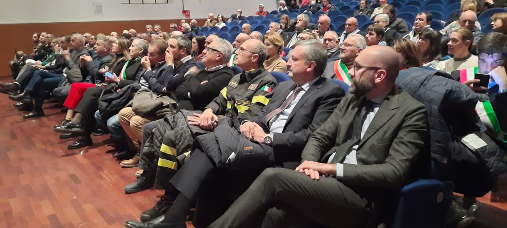 In prima fila il senatore Giorgio Maria Bergesio, le deputate Chiara Gribaudo e Monica Ciaburro, il presidente della Provincia Luca Robaldo, la sindaca di Cuneo Patrizia Manassero con il vice Luca Serale e gli assessori Sara Tomatis e Valter Fantino, il sindaco di Saluzzo Mauro Calderoni, il presidente della Fondazione CRC Ezio Raviola e i sindaci delle Valli Vermenagna Gesso e Stura.