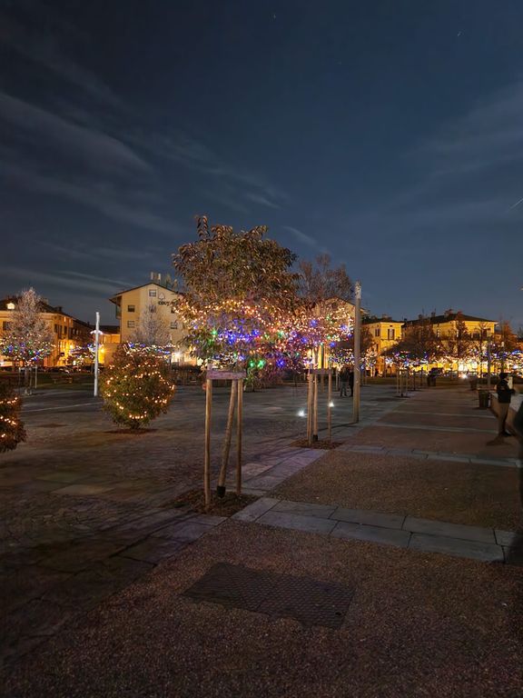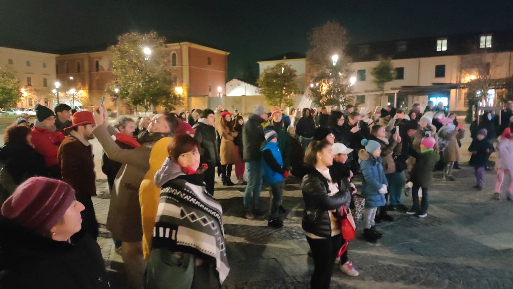 Spettacolo in piazza Foro Boario, dove, in attesa dell'accensione delle luminarie in tutta la città, sono state accese le luci dei 130 alberelli della piazza, un evento che si ripete già da qualche anno, diventato un atteso appuntamento cittadino.