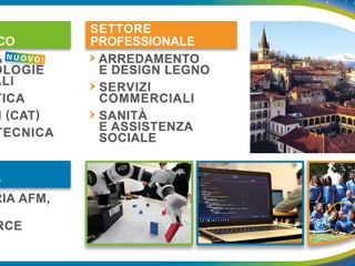 Importante la conferma dell’opzione E-commerce e Marketing Digitale avviata con successo lo scorso anno con un focus sul settore del commercio elettronico, sulla promozione online dell’immagine aziendale e sull’analisi dati. L'istruzione professionale è rappresentata da Sanità & Assistenza Sociale (gestione di progetti e attività rivolti a bambini, adolescenti, disabili, anziani, comunità e fasce deboli) e Servizi Commerciali (gestione commerciale e amministrativo-contabile di un’azienda, anche in proprio, utilizzando strumenti informatici e grazie all'apprendimento di due lingue straniere).