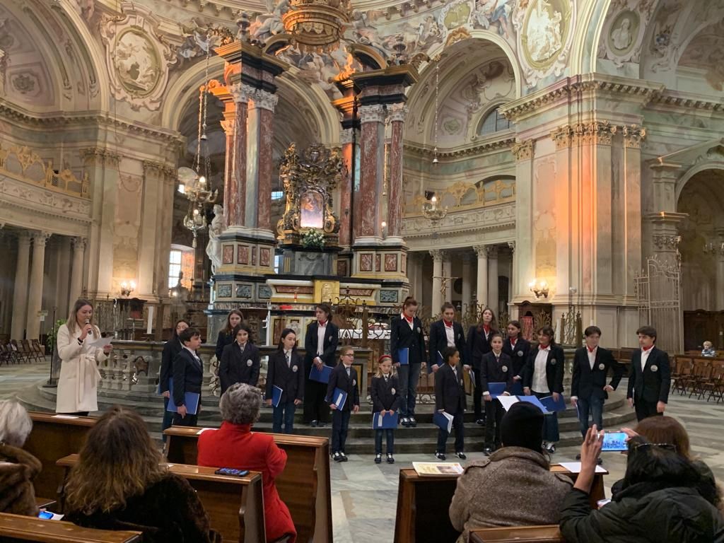 Domenica 11 dicembre grande affluenza di pubblico in Basilica per il concerto del Coro delle voci bianche della Scuola Comunale di Musica di Mondovì, con la direzione di Maurizio Fornero e l’accompagnamento organistico di Alberto Rainetti.