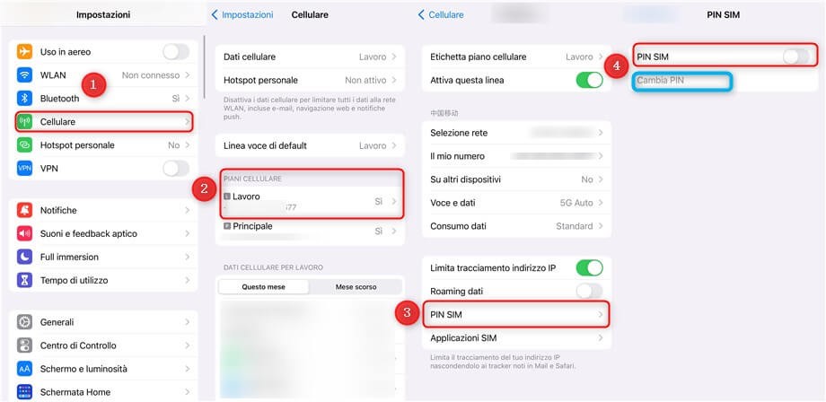Quando attiviamo la password della carta SIM, ogni volta che riavviamo l'iPhone, la carta SIM è in uno stato bloccato e dobbiamo inserire il PIN della carta SIM per sbloccarlo. Se ha paura di dimenticare la password e causare il blocco della carta SIM, può disattivare il PIN della SIM in Impostazioni > Cellulare > PIN SIM in modo da non dover più inserire il PIN della SIM quando riavviamo l'iPhone.