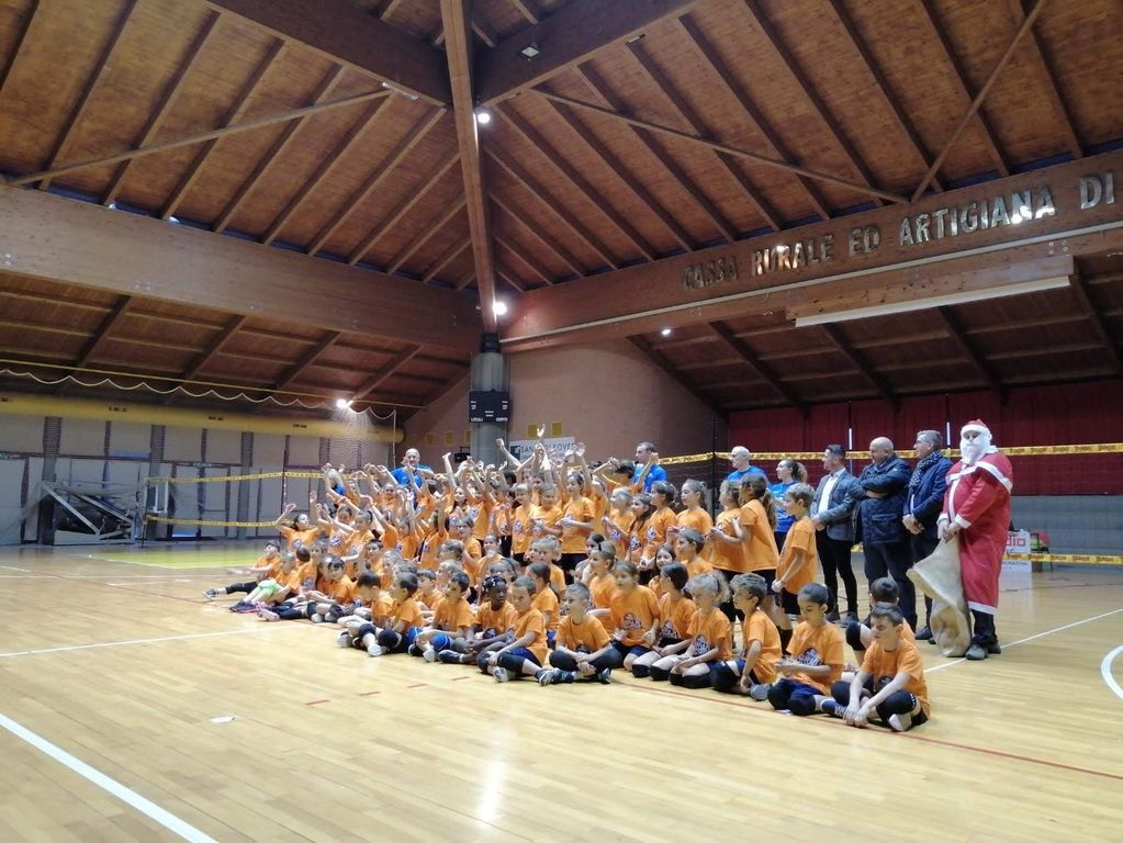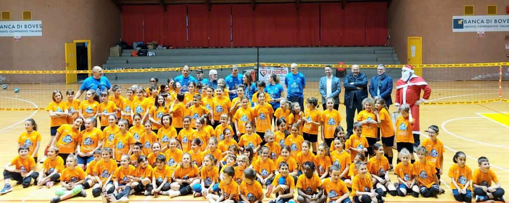 Festa di Natale per la Scuola di pallavolo ideata e diretta da Liano Petrelli al palasport di Boves, dove centinaia di ragazzini e ragazzine si sono ritrovati per festeggiare insieme.