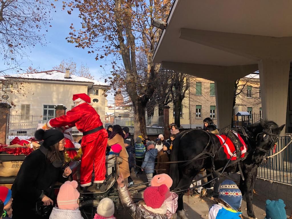 Nella mattinata di lunedì 19 dicembre, infatti, i piccoli hanno ricevuto la visita di due speciali “Babbo Natale” che hanno raggiunto la scuola con la carrozza trainata dal un bel destriero nero. A tutti i bimbi sono arrivati molti graditi doni.