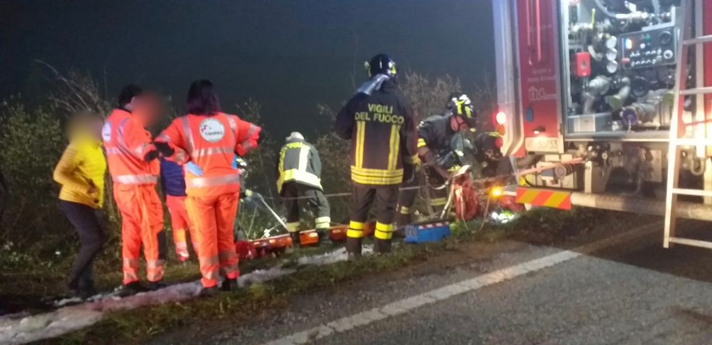 Ingente dispiegamento di soccorsi, con tre squadre di vigili del fuoco impegnate per il recupero delle persone coinvolte