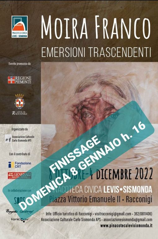 Domenica 8 gennaio 2023 alle ore 16 negli ambienti della Pinacoteca civica Levis Sismonda di Racconigi si terrà il finissage della mostra “Emersioni trascendenti”, alla presenza dell’artista Moira Franco.