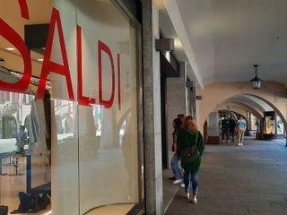 Le vetrine riportano le percentuali di sconto che, in alcuni casi, arrivano fino al 50%.
