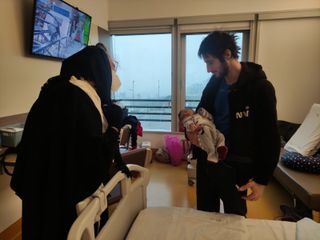 Tra i bimbi raggiunti dalla befana, anche il piccolo Mattia, con mamma Silvia e papà Luca, il primo nato del 2023.