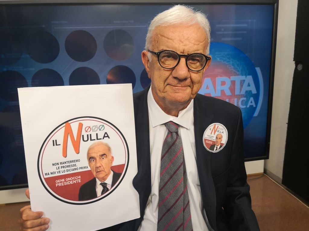 Una vera e propria convention, un monologo esilarante dai contorni assolutamente politici e ironici e satirici dal titolo “Il Nulla. Non manterremo le promesse, ma noi ve lo diciamo prima”. Con il suo spettacolo dedicato alla politica e costruito sul lancio di un fantomatico e surreale “partito”, Gene Gnocchi prende in giro l’attualità: come la migliore tradizione italiana insegna, il movimento nasce dalla televisione per diventare qualcosa di reale. “Lavorare meno, Lavorare voi” è uno degli slogan del nuovo partito.