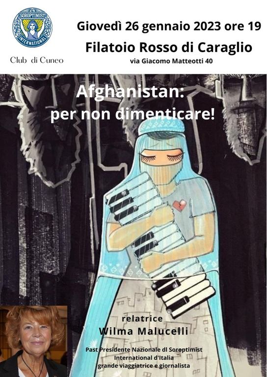 Il Soroptimist di Cuneo organizza,al Filatoio Rosso di Caraglio, giovedì 26 Gennaio alle ore 19, un momento di sensibilizzazione e di riflessione sulla drammatica condizione delle donne afghane.