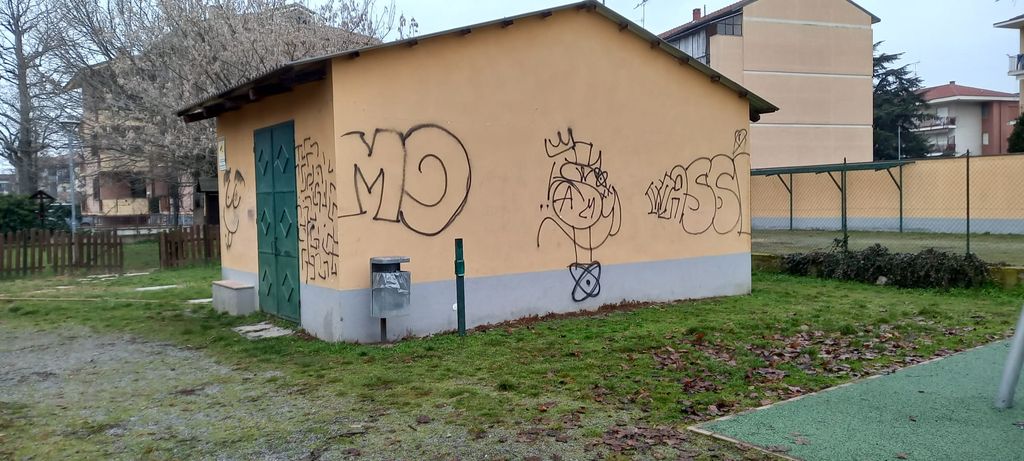 Nella notte tra mercoledì 25 e giovedì 26 gennaio, i ‘soliti ignoti’ hanno imbrattato con la vernice spray i muri della casetta che si trova nei giardini di via Piumati.