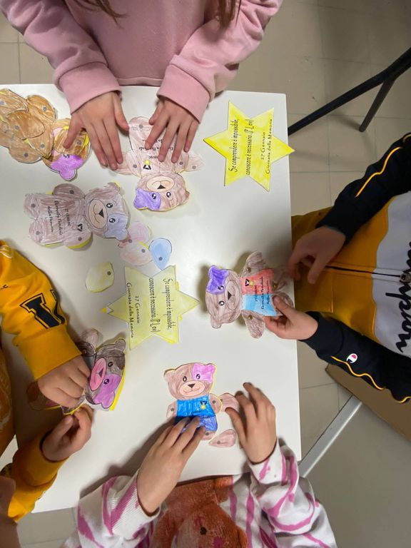 Questa esperienza ha consentito ai bambini di avvicinarsi alla profondità della tematica anche attraverso la storia raccontata nel libro “Otto. Autobiografia di un orsacchiotto.” di Tomi Ungerer ambientato nella Germania della Seconda Guerra Mondiale che ha come protagonisti due amici che “solo una stella gialla cucita sul petto riuscì a dividere”…ma non per sempre.
