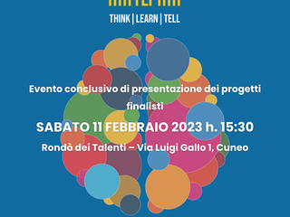 Sabato 11 febbraio, dalle 15,30 alle 18,30 presso il Rondò dei Talenti (in Via Luigi Gallo 1 a Cuneo), si terrà l’evento finale di “TLT - Think – Learn – Tell”, un progetto ideato dalla Consulta Giovanile di Cuneo con il sostegno del Comune di Cuneo, Assessorato alle Politiche Giovanili, ed il contributo della Fondazione CRC e di Nova Coop (all’interno del progetto “Im.patto” - https://im-patto.it/), con l’obiettivo di dare ai giovani i giusti strumenti per raccontare al meglio le proprie idee, trasformandole in proposte concrete ed appetibili.