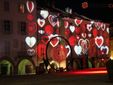 Piazza Maggiore a Mondovì si colora di rosso con cuori e mongolfiere.