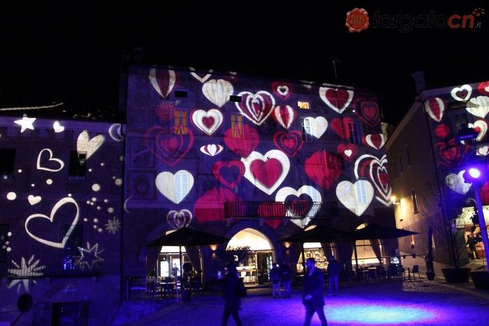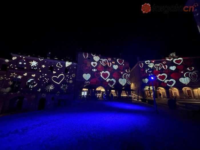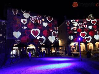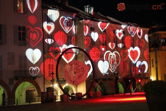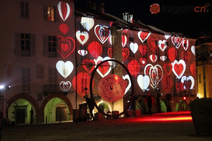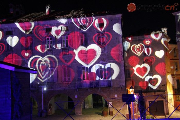 Dopo gli abeti innevati che hanno accolto il Natale, lo spettacolo "Luci a Piazza", che ha visto nuovamente la collaborazione dell'associazione “La Funicolare” con l’amministrazione comunale di Mondovì, Prato Nevoso Ski, Fondazione CRC e Banca Cambiano 1884, propone un set dedicato agli innamorati.