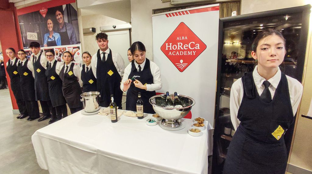 Le cene didattiche organizzate da 'Alba Accademia Alberghiera' sono una palestra dove si allenano senza reti i ragazzi che hanno scelto di diventare cuochi e operatori di sala, senza la possibilità di rifare la scena.